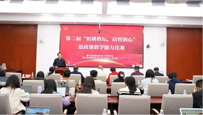 我校思政教师全程观摩了浙江机电职业技术大学第二届青年教师“躬耕教坛,启智润心”思政课教学能力比赛。活动中,6名青年教师分别从《习近平新时代中国特色社会主义思想概论》《思想道德与法治》等思政必修课程中选取不同章节,分别以“让改革创新成为青春远航的动力”“铸就社会主义文化新辉煌”等为主题,先后进行了精彩的说课展示。