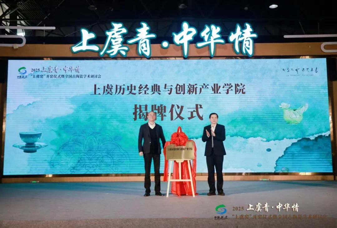 近日,以“上虞青·中华情”为主题的“上虞窑”开窑仪式暨全国古陶瓷学术研讨会在绍兴上虞瓷源文化小镇隆重举行。本次活动汇聚了国内外文博专家、学者及地方政府领导,我校作为协办单位之一,深度参与其中,并于活动中正式揭牌成立“上虞历史经典与创新产业学院”,标志着学校在产教融合与传统文化创新领域迈出关键一步。