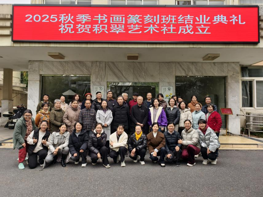 2025年12月30日,我校社区学院联合西湖区翠苑社区共同举办2025秋季国画、书法、篆刻班结业典礼暨积翠艺术社成立仪式。本次活动立足校社文化共建,通过成果展示、社团孵化、服务落地三大环节,将高校专业资源与社区文化需求深度对接,吸引翠苑社区40余名居民参与,共同见证传统艺术传承的丰硕成果。