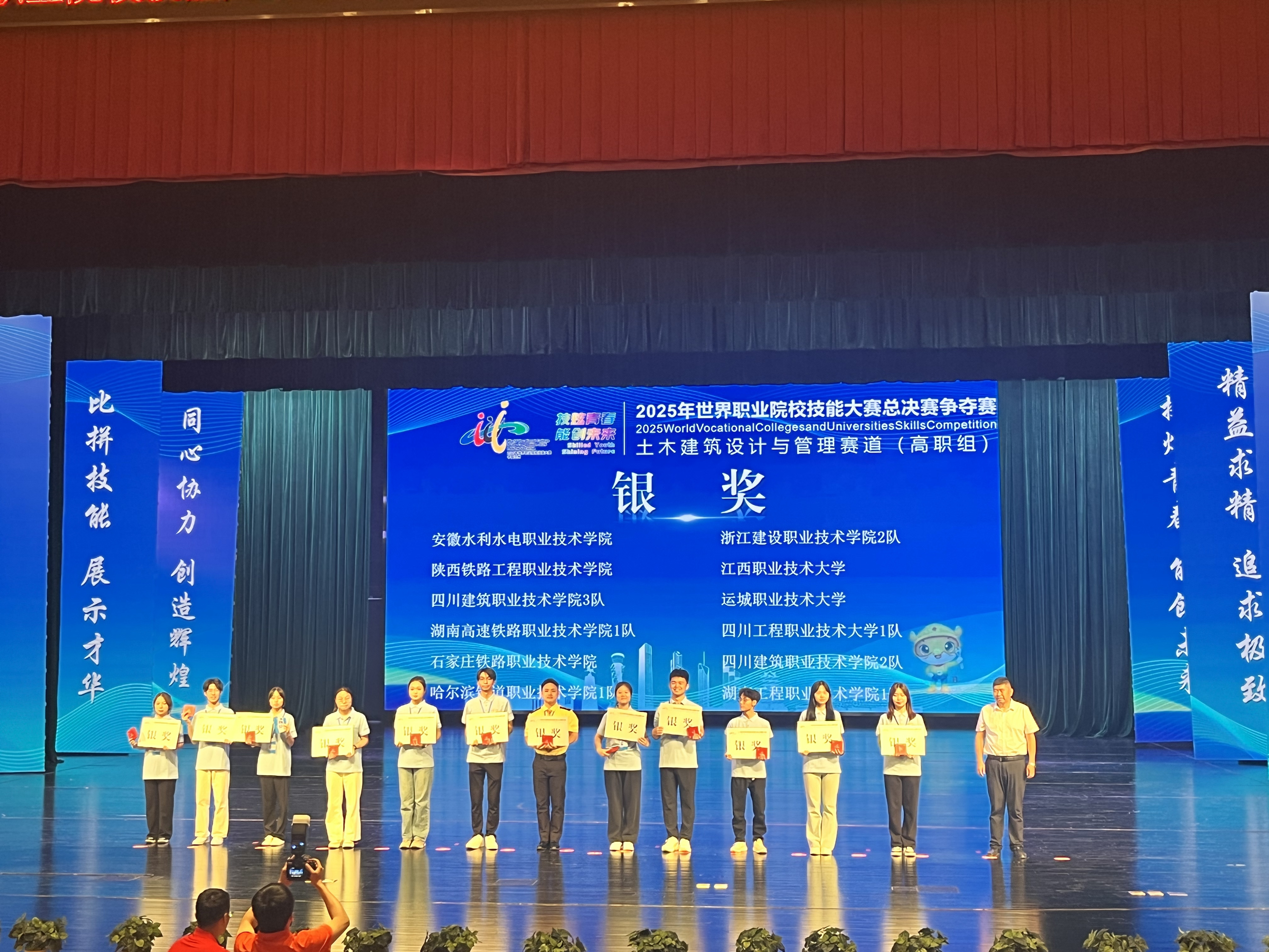 2025年8月29日,我校工程管理学院参赛队在2025年世界职业院校技能大赛争夺赛土木建筑设计与管理赛道(高职组)比赛中传来捷报!经过激烈角逐,学院参赛团队凭借扎实的专业技能、出色的团队协作以及创新的工程管理理念,荣获全国银奖,展现了工程管理学院在职业教育领域的卓越实力和风采。