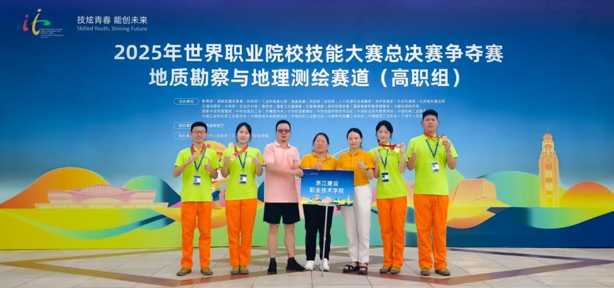 8 月 26 日至 30 日,2025 年世界职业院校技能大赛总决赛争夺赛地质勘察与地理测绘赛道(高职组)在江西赣州隆重举办。来自全国 30 多个省(自治区、直辖市)的 105 支省级冠军队齐聚一堂展开激烈角逐。我校建筑工程学院由王静、郭戬两位老师指导,吴昕仪、胡苗彩、陈诗明、郑一豪四名同学组成的参赛团队,凭借过硬的专业素养、真实的实践项目、默契的团队配合,在这场高规格赛事中脱颖而出,成功斩获该赛道金奖。又经过两轮复评,最终以全国第一的复评成绩强势晋级排位赛,为学校赢得了荣誉,也在全国职业院校面前展现了我校测绘专业的强劲实力。