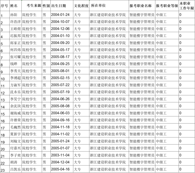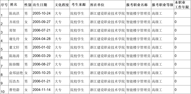 计划号2025-Y-008137智能楼宇管理员(高级工)成绩合格人员公示名单: