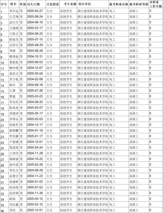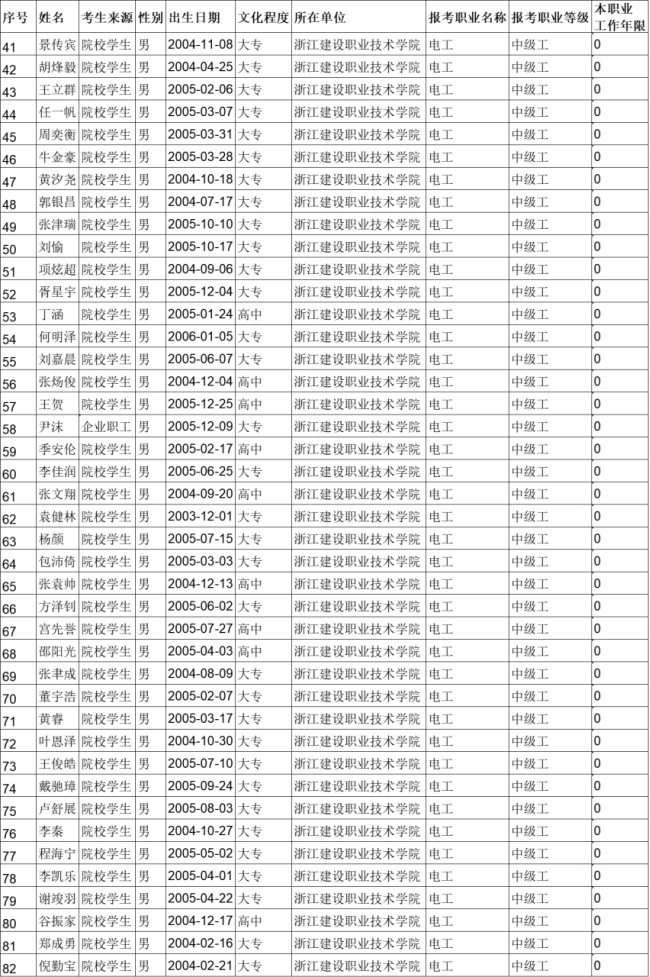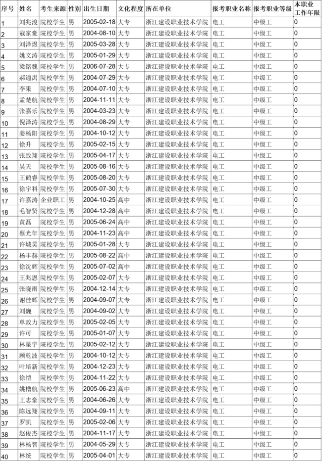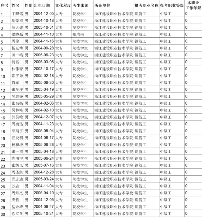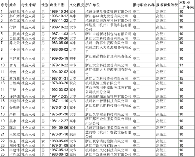 现将计划号2025-S-007634、2025-Y-008517电工(高级工),2025-Y-008138电工(中级工),2025-Y-008135、2025-Y-008951智能楼宇管理员(中级工),2025-Y-008952、2025-Y-008137智能楼宇管理员(高级工),2025-Y-008136钢筋工(中级工)职业技能等级认定考生合格人员信息(详见附件)予以公示,公示期为5个工作日(2025年10月28日----2025年11月3日)。