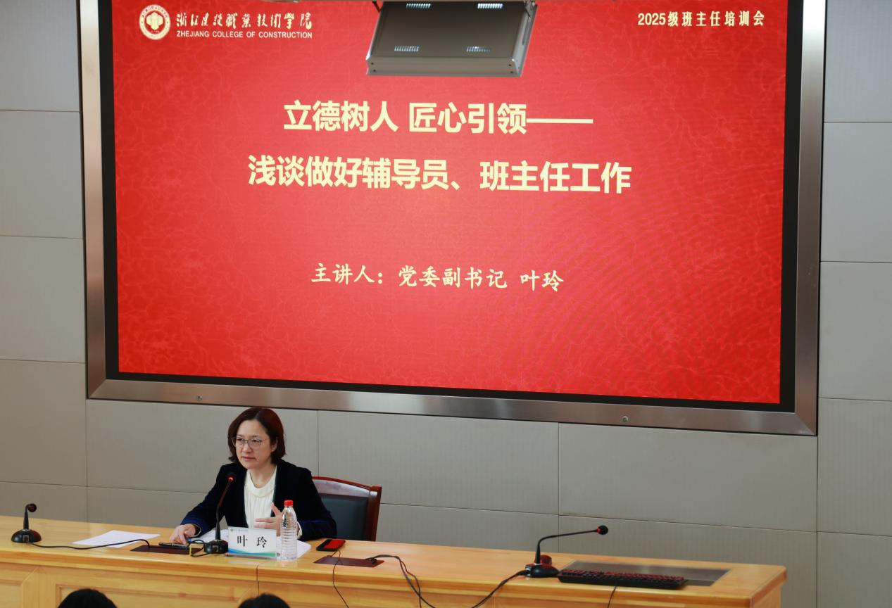 10月29日上午,学校在萧山校区教学楼B201报告厅举行辅导员、班主任培训会。学校党委副书记叶玲,学生工作部、各二级学院学生工作负责人、全体辅导员及2025级班主任参加。培训会由学工部部长蔡敏华主持。