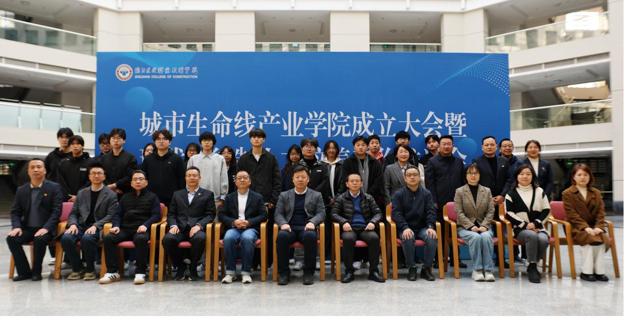 为深入贯彻落实学校产教融合的高质量发展主线,创新构建校企合作协同育人的机制,2025年11月21日,我校协同杭州城投综合管廊有限公司、杭州上城市政工程集团、安吉国源水务集团等单位共同举办“城市生命线产业学院”成立大会暨深化推动现代学徒制人才培养工作推进会。杭州城投综合管廊有限公司党总支副书记、总经理汪永兵,杭州城投综合管廊有限公司党支部书记、副总经理沈炯,杭州市地下管道开发有限公司党群工作部主任蔡青、杭州城投综合管廊有限公司运维分公司副总经理万亚、杭州城投综合管廊有限公司项目经理孙一奇、杭州上城区市政工程集团有限公司副总经理杜昕、杭州路通环境科技有限公司副总经理、杭州市劳动模范严晓亮、杭州时代建设有限公司副总经理吴壮垚、安吉国源水务集团党总支书记、执行董事、总经理钱炯,安吉国源水务集团副总经理何洁等20余名企业代表莅临大会。